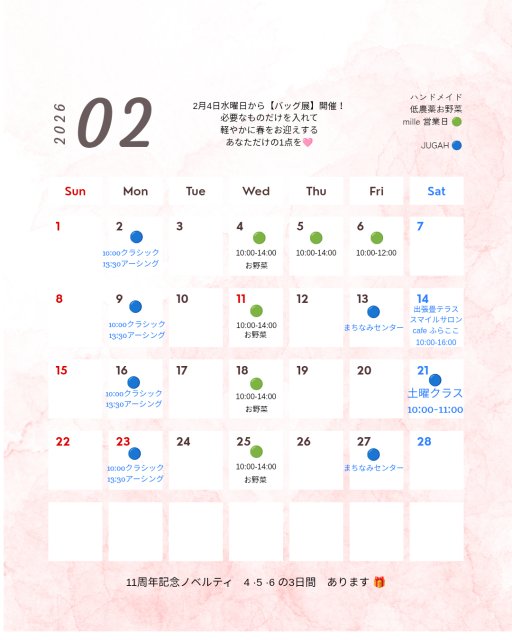 日々の出来事や商品入荷情報などをいち早く「ハンドメイドと雑貨の店 mille*ミル*」にUpしています。